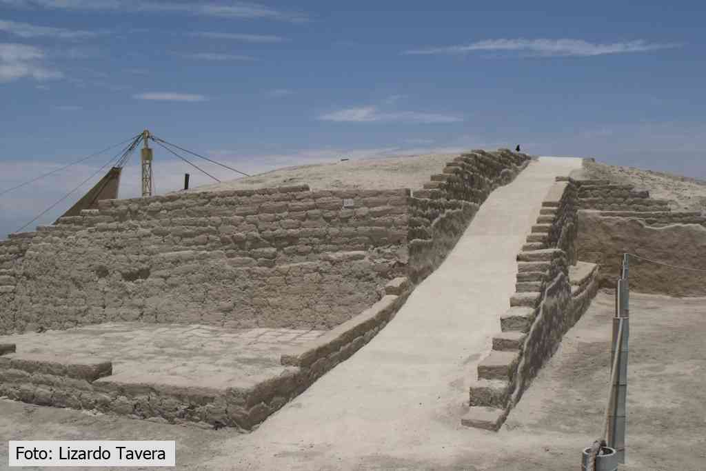 La parte baja (Plaza Ceremonial, Anexo y Recinto Ceremonial) se comunica con la parte alta, la cima de la Pirámide Principal (Patio Ceremonial, Segundo Recinto Ceremonial, Plataforma Principal y Altar) por una larga rampa que corre adosada al Anexo, en un inicio y luego se apoya en la fachada de la Pirámide Principal trazando un recorrido en zigzag.